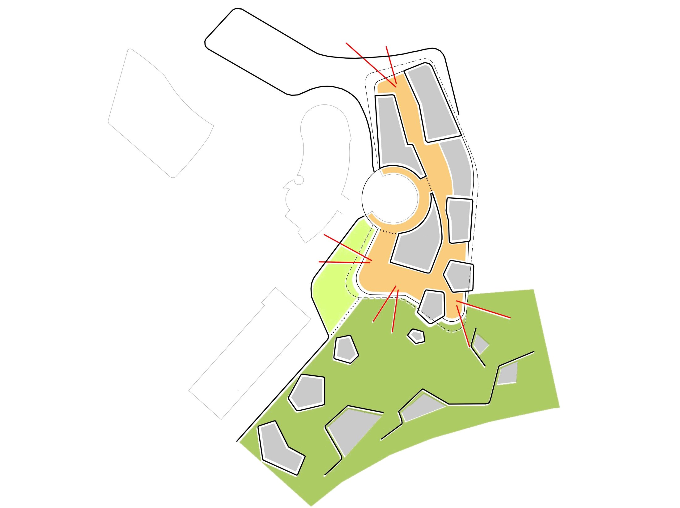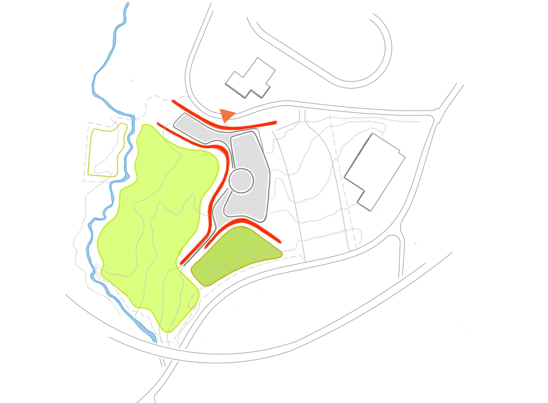 Set within a distinctive landscape between green valleys, sports facilities, and infrastructure, the project upgrades the existing outdated complex into a modern, multifunctional bathing environment. The concept retains key elements such as the iconic dome while extending the program with additional pools, a sauna landscape, wellness areas, and improved changing and entrance facilities. The design follows a landscape-based approach, embedding the architecture into the topography rather than creating a standalone object. A two-story structure evolves from the existing building, with flowing rooflines and integrated outdoor spaces that connect interior and exterior functions.