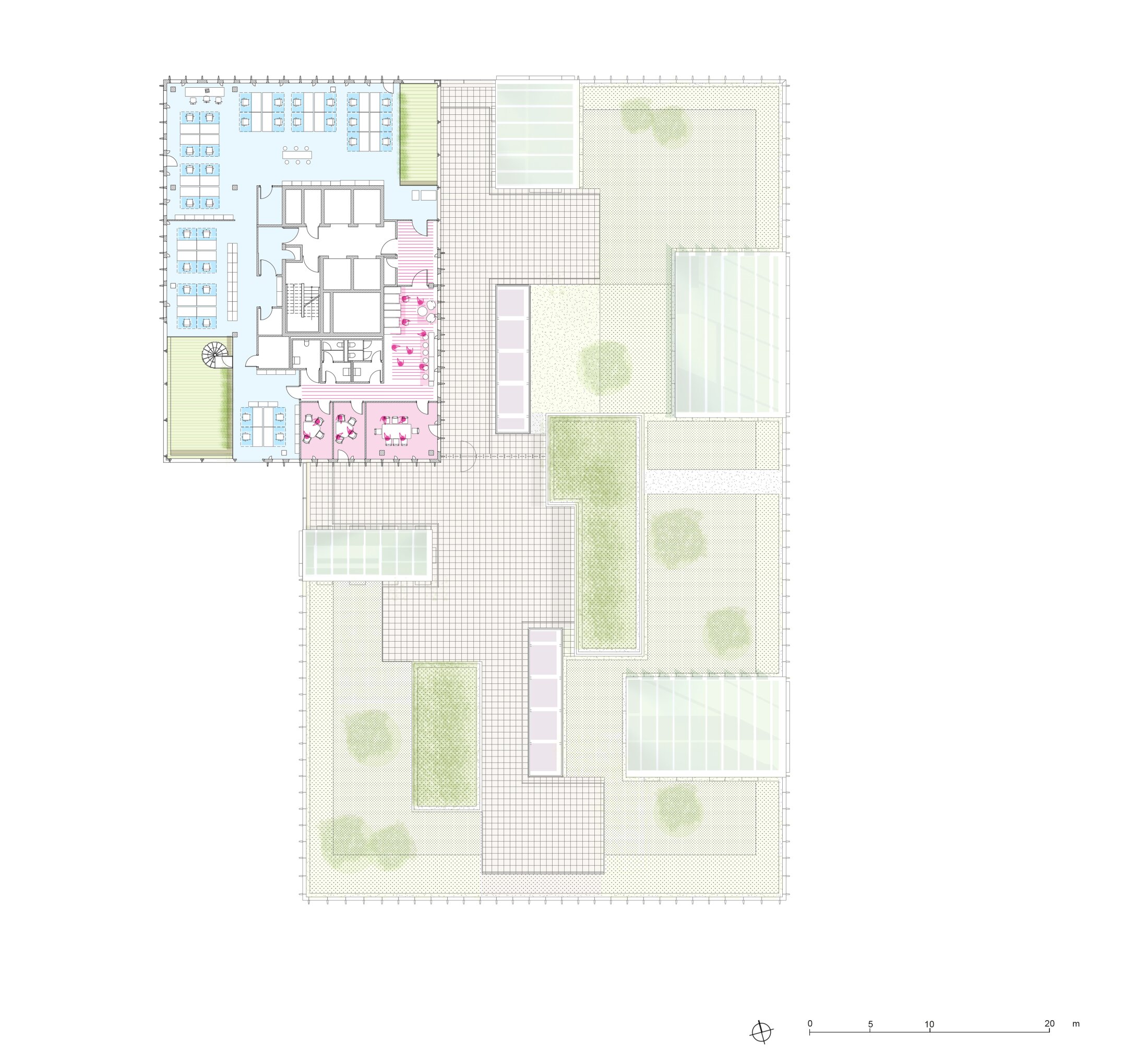 Edge ElbSide, a state-of-the-art office building situated in Hamburg's emerging Elbbrücken district within Hafencity, redefines the concept of contemporary work environments. Departing from the original masterplan's concept of an office building with an enclosed interior courtyard, our design strategy reimagined this feature by dispersing and integrating courtyard elements throughout the structure as innovative winter gardens. These spaces serve as transitional zones between indoors and outdoors, creating unique microclimates that enrich the building's spatial experience.