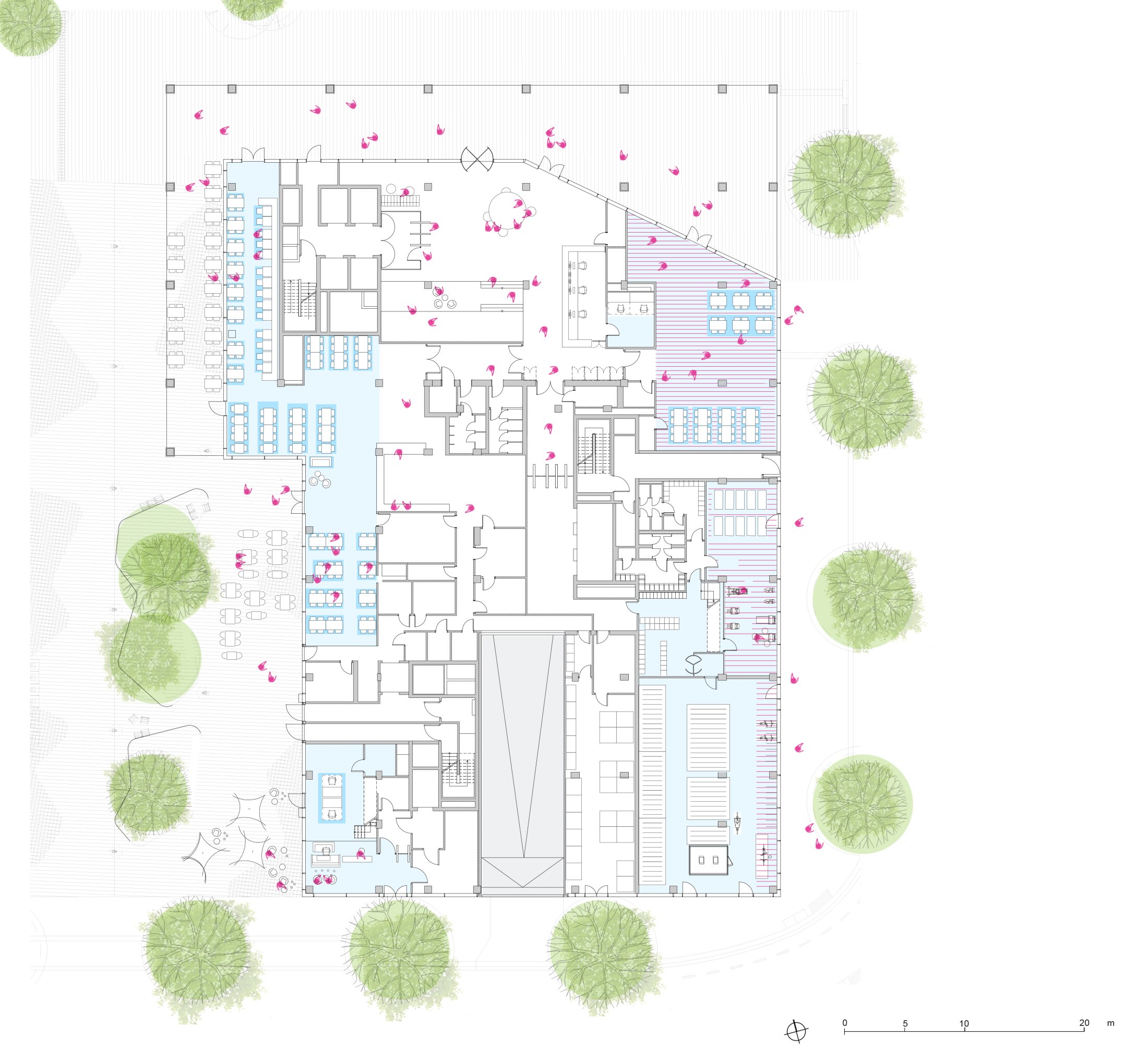 The design of Edge ElbSide revolves around these distinctive winter gardens, which not only offer serene settings for individual work and meetings but also contribute to the building's energy efficiency. Through the incorporation of natural elements and the promotion of cross-ventilation, these winter gardens play a vital role in reducing the overall energy consumption of the building, establishing it as a sustainable and eco-friendly workplace. In contrast to traditional office layouts characterized by enclosed cubicles and isolated corridors, Edge ElbSide embraces open and flexible spaces that foster communication and collaboration among its occupants. The building's central main line offers orientation and vertical circulation, working in tandem with the winter gardens to organize the work areas and enhance the overall functionality of the space.