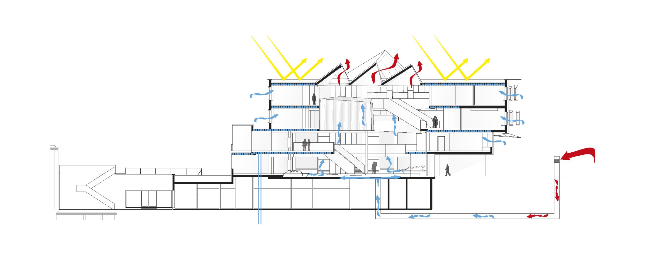 The building meets advanced standards for energy efficiency and is integrated into the existing supply infrastructure of the campus clinics. Rainwater collected around the building is filtered before it enters the groundwater. The selective use of air condition, combined with activated slabs, optimizes both installation and operating costs.