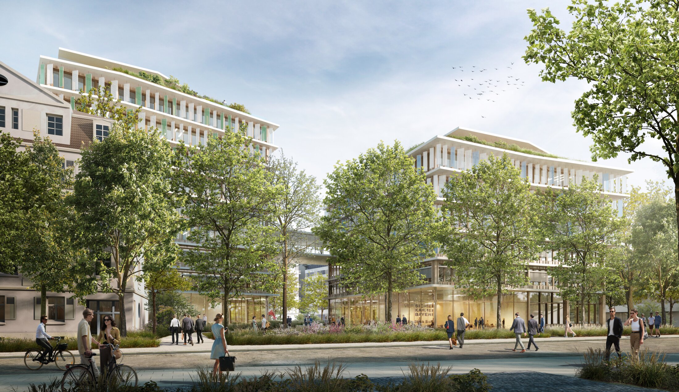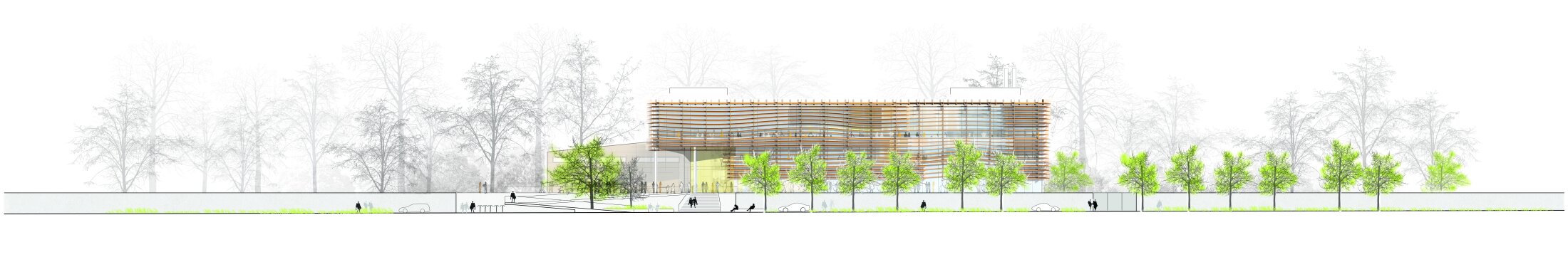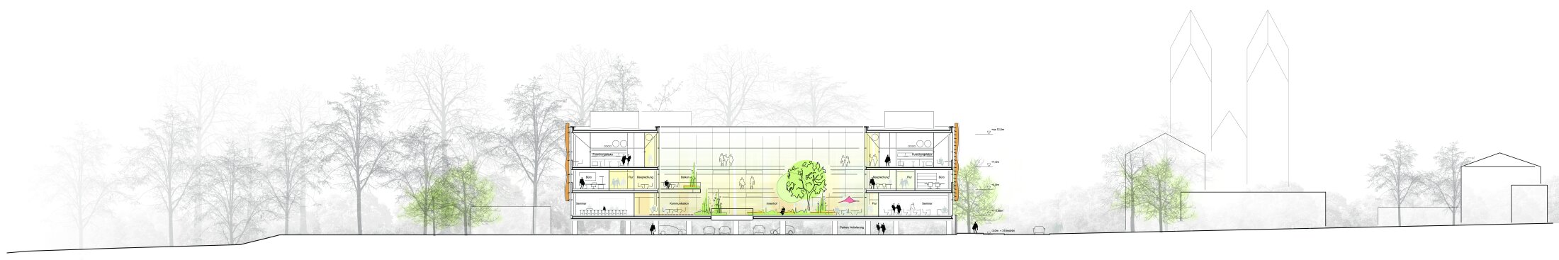 The structural concept is based on a reinforced concrete frame, allowing adaptable use over time. Lightweight timber-glass façades with integrated shading systems ensure energy efficiency, daylight quality, and a distinctive architectural identity. An integrated climate and energy concept combines passive strategies, natural ventilation, thermal mass activation, and renewable systems such as geothermal energy and photovoltaics. The result is a flexible, sustainable, and communicative research environment with a strong spatial identity.
