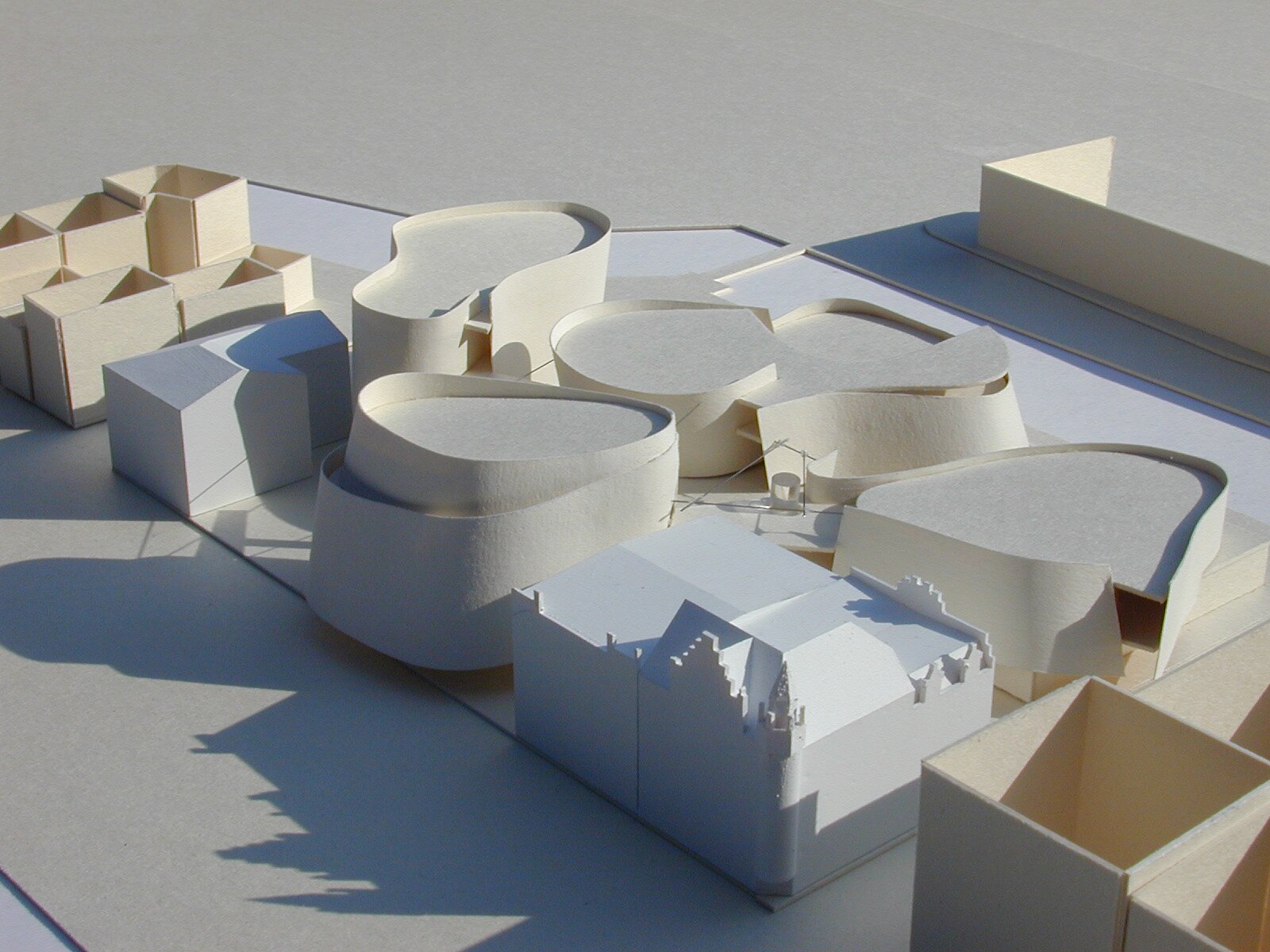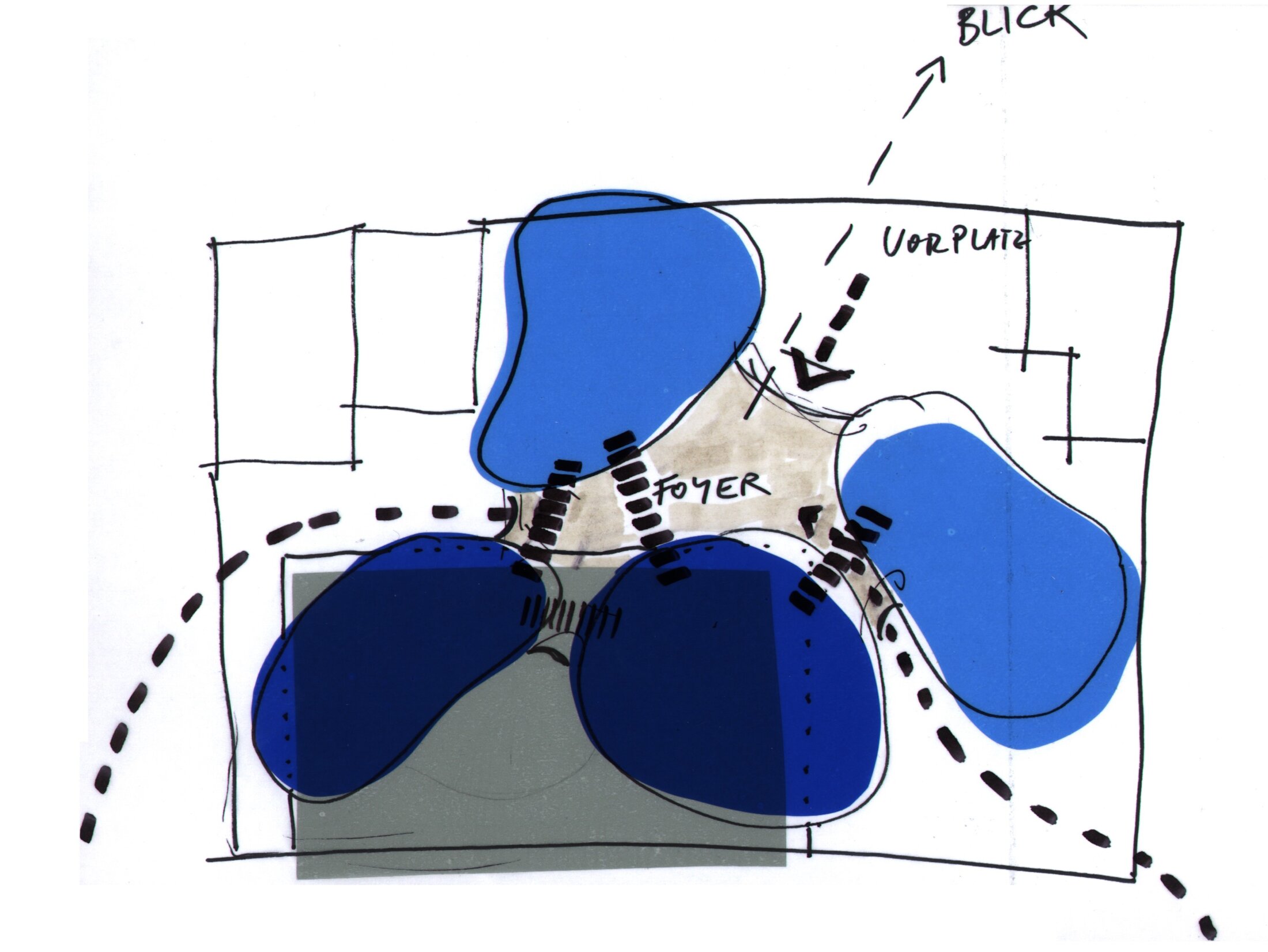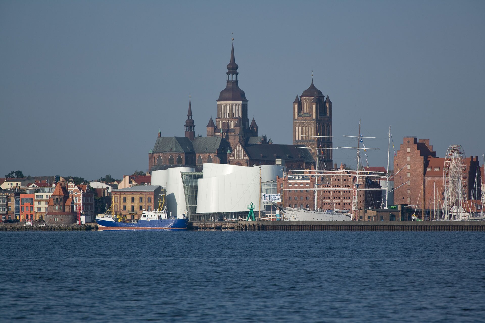 The architectural form follows functional requirements, with flowing volumes that reflect the internal circulation. Curved facade bands unify the individual buildings into a cohesive ensemble, while their sculptural expression enhances the city skyline. Large-scale steel panels, inspired by shipbuilding techniques, define the exterior and reinforce the maritime character. The foyer remains open and publicly accessible, offering views towards the harbor and the historic city. Additional functions such as café, shop, and event spaces are integrated at ground level, extending the public realm into the building.