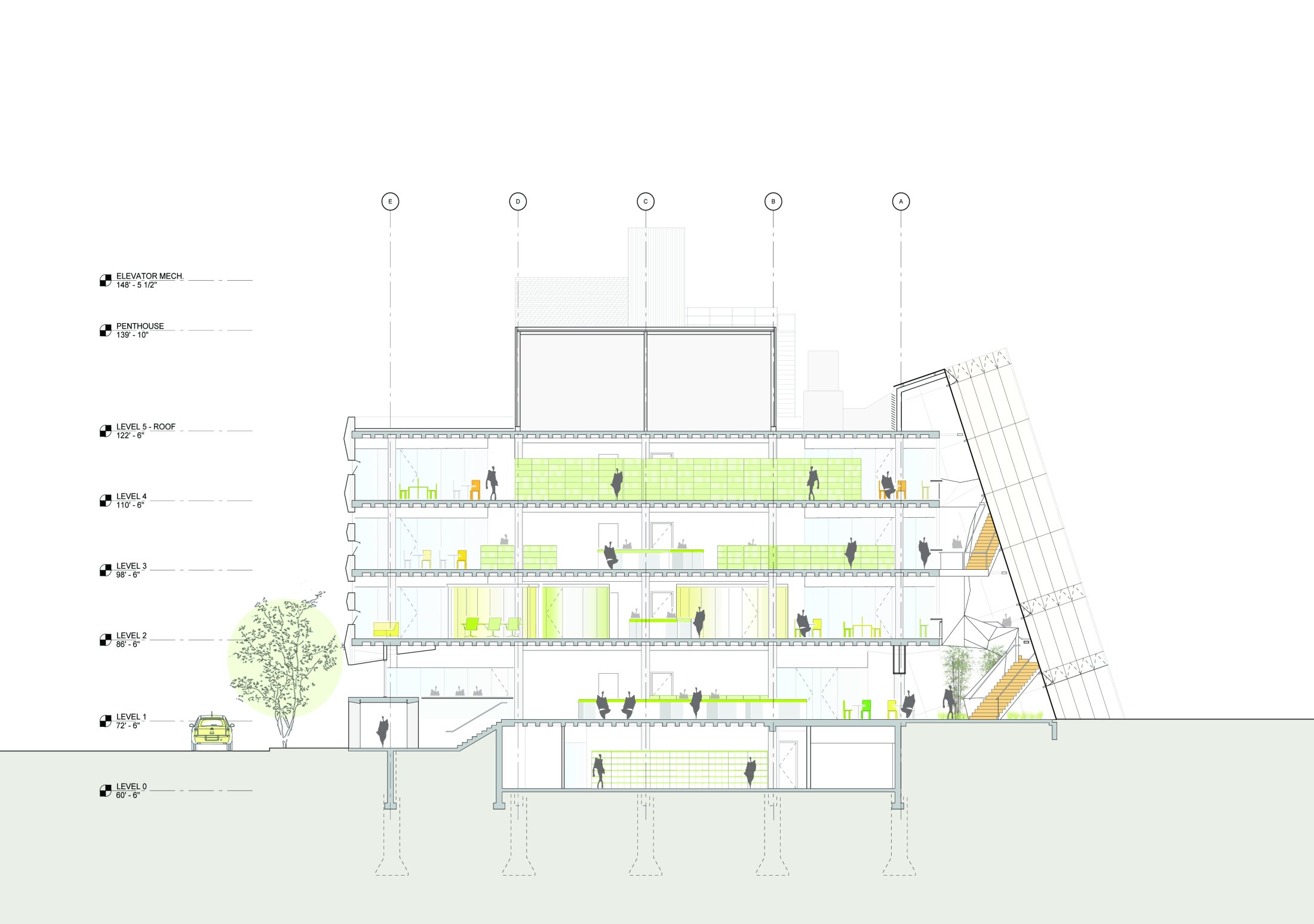 After an initial study, we convinced the client to forgo demolition of the 1960s building in favor of its rehabilitation and re-cladding. Located at the intersection of two prominent streets in Baltimore, the structure has visual connections to Penn Station and other important landmarks on campus, establishing a strong entry point to the university.