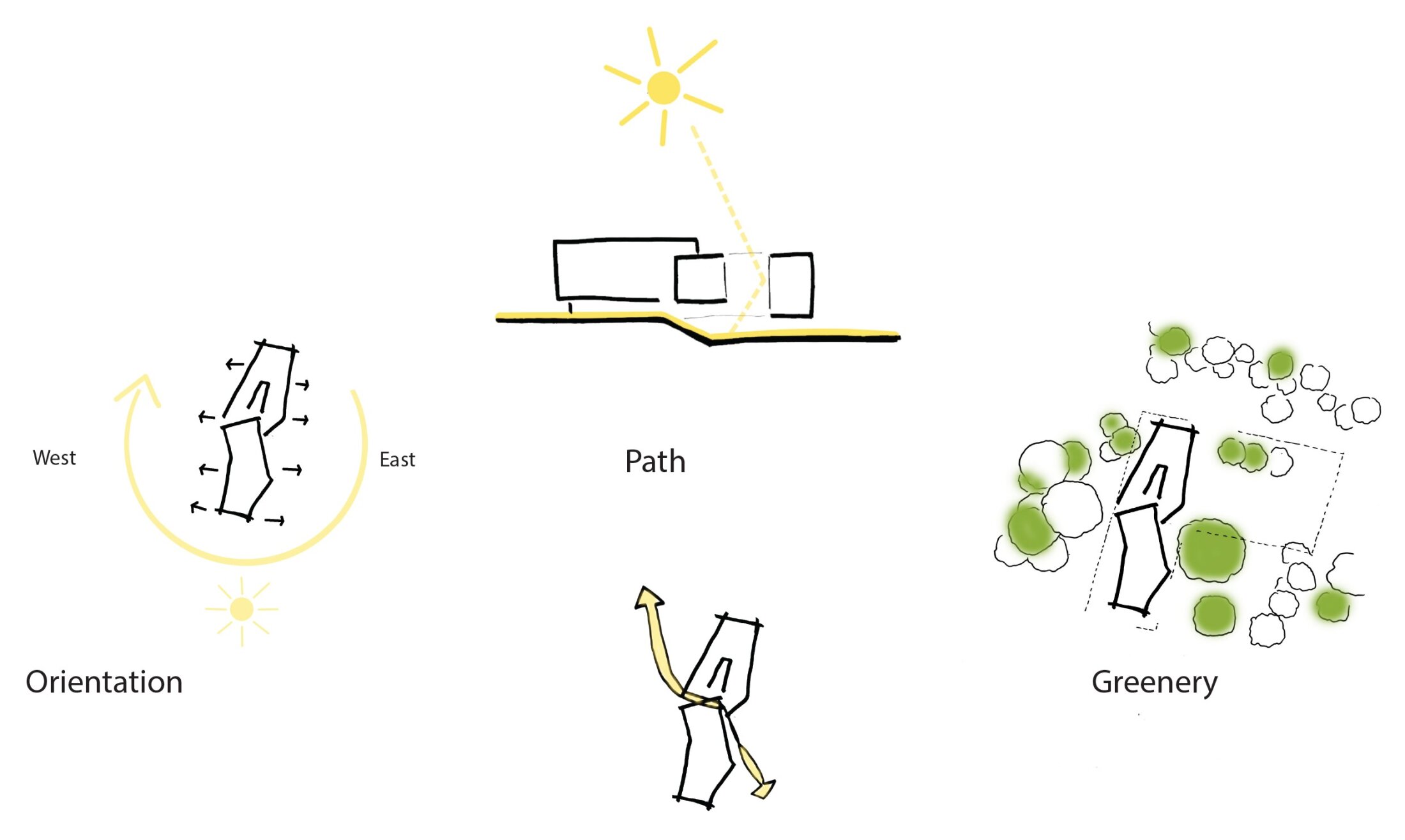 The skewed axial alignment of the elongated, five-story building, which is staggered in height along its eastern side, allows the structure to keep its distance from the existing oak and helps create a striking entrance area. The northwest side offers additional space for premium, open-air leisure areas. The core idea behind the design was to connect Franz-Mayer-Strasse to the south with the building and stretch of green to the north. A newly created public footpath offers the main means of access and opens out onto a wide and inviting set of stairs located near the entrance area, which leads down to a protected courtyard and doubles up as a stage for events and other purposes. The public communal areas on the garden level offer seating, a barbecue area, and other recreational amenities both inside and outside the building allowing the hustle and bustle of student life to play out undisturbed. Islands of green are embedded around the site, offering a space for students from all over the world to meet and converse, thus filling the Nibelungen complex with life.