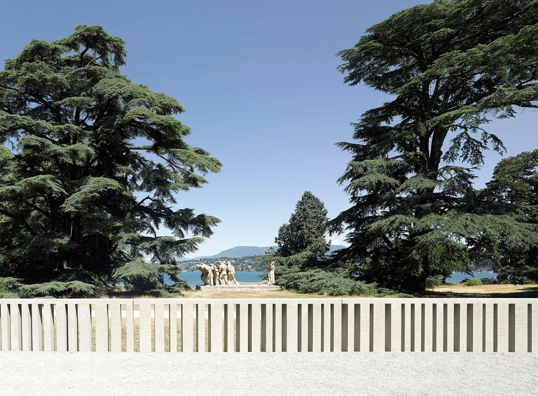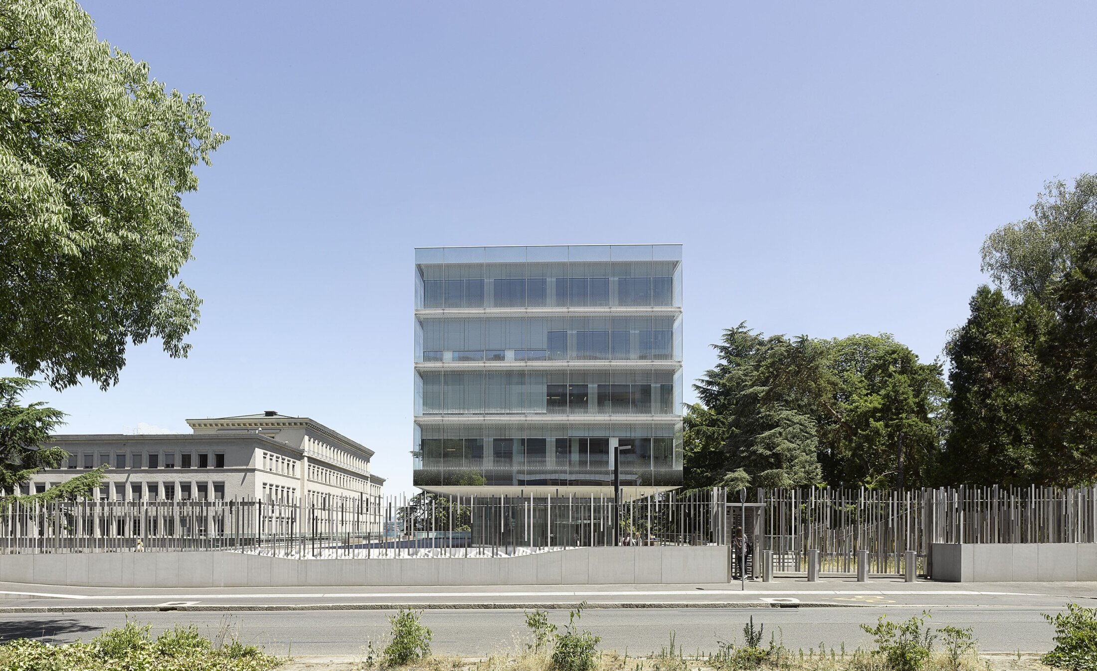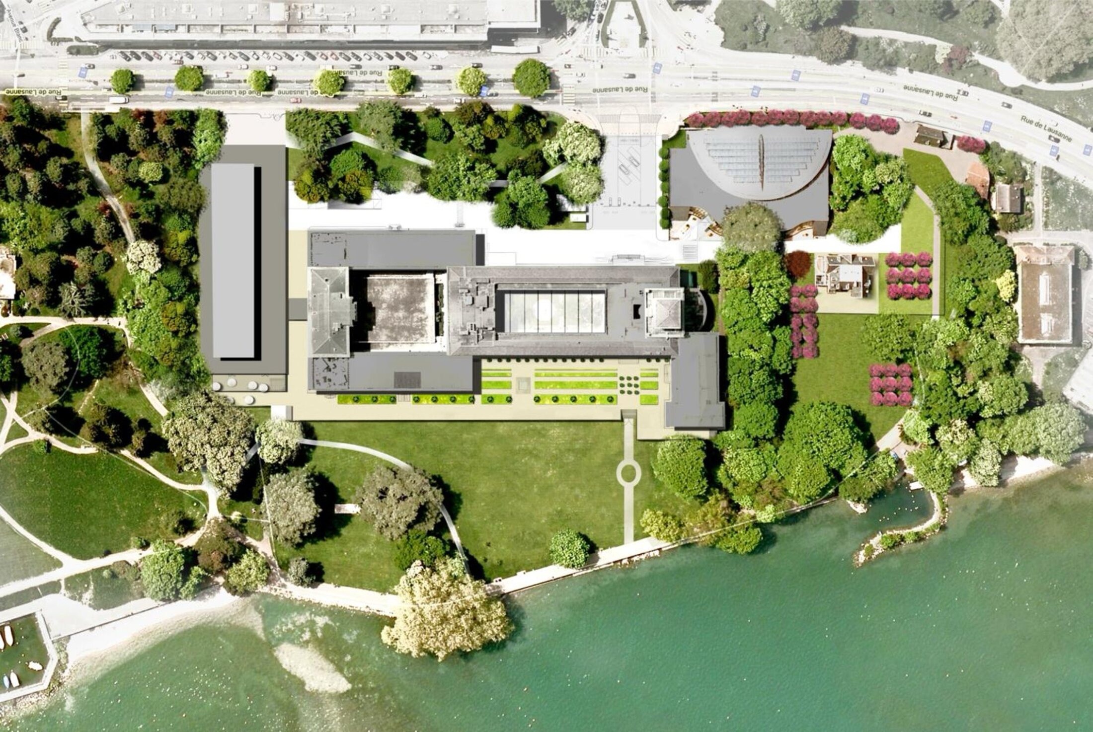 Located along the shores of Lake Geneva in Geneva, Switzerland, the WTO campus is embedded within a sequence of diverse public parks, including Parc Barton, Parc Rappard, and the botanical gardens. This unique setting posed a particular challenge: to reconcile the high security demands of an international organization with the openness and accessibility of a publicly used landscape.