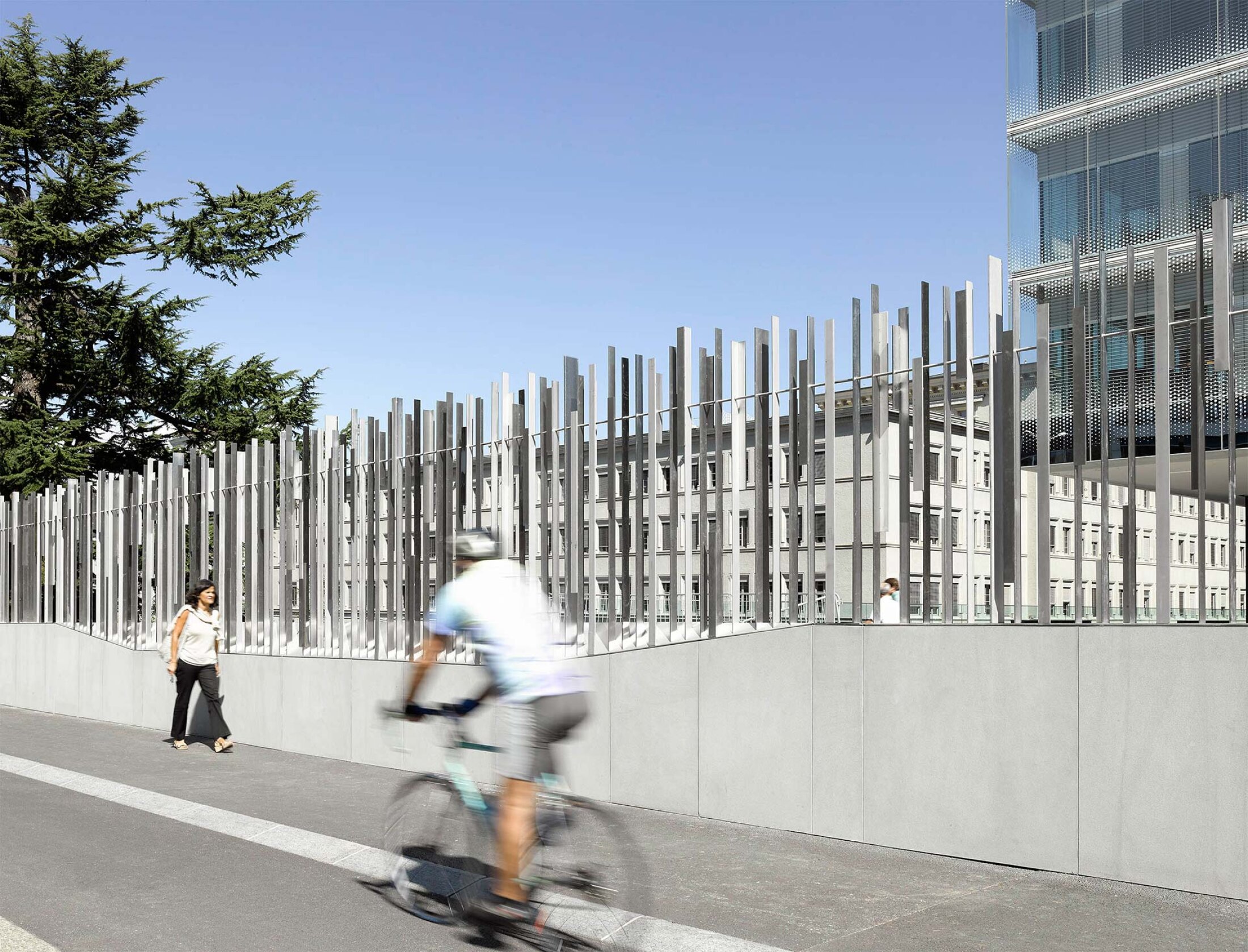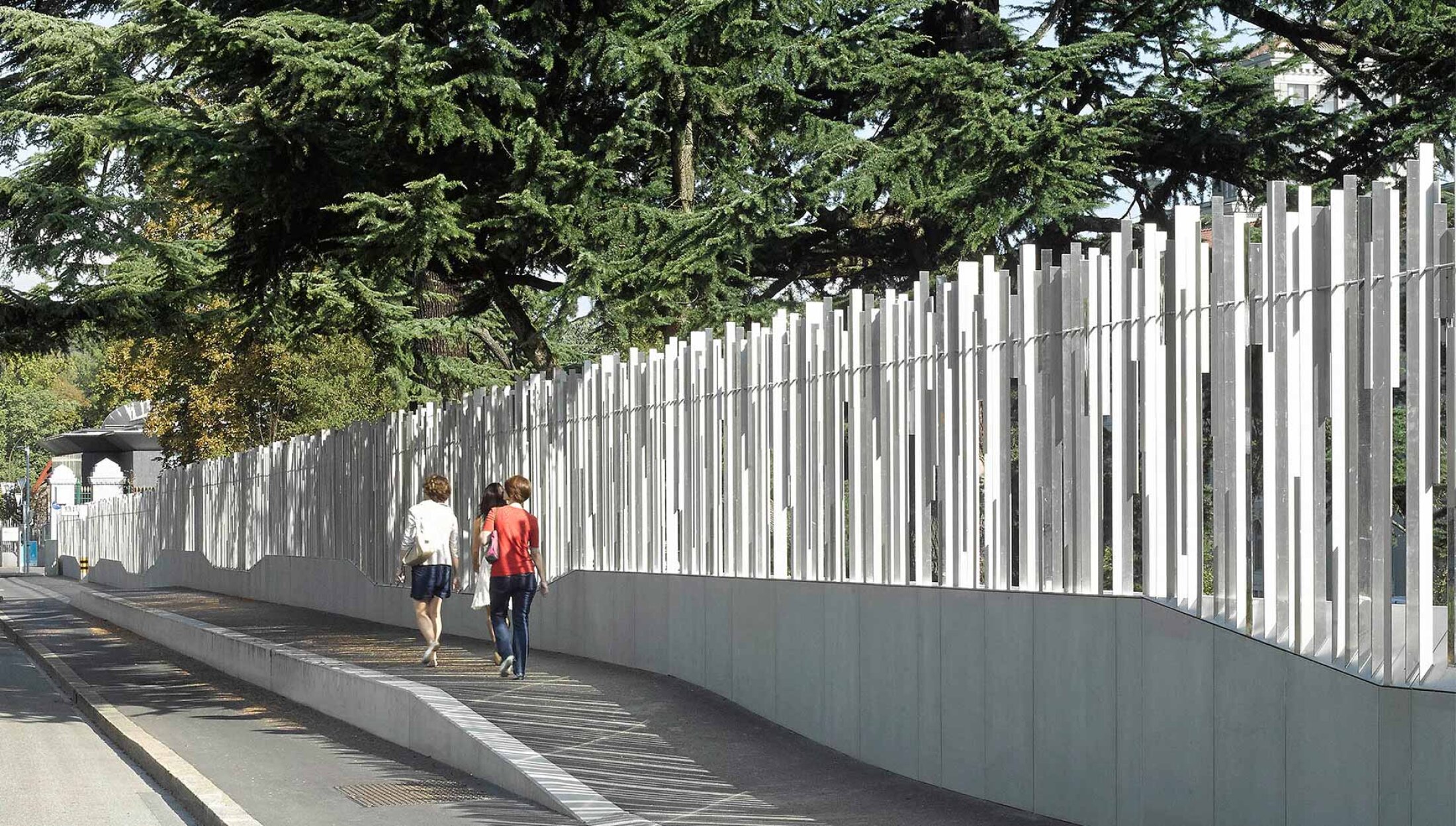 As the perimeter wraps the entire WTO campus in Geneva, Switzerland, it forms a continuous yet unobtrusive element that blends security, landscape, and architecture into a coherent whole. Additional landscape architectural interventions further reinforce this integration and enhance the quality of the outdoor spaces. The project demonstrates how security infrastructure can achieve both robustness and transparency, protection and openness, becoming an integral part of the landscape rather than a barrier within it.